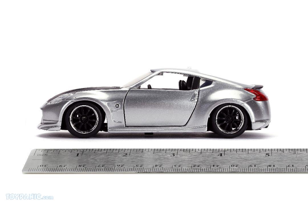 Brand new 1/32 scale diecast car model of Nissan 370Z Silver with Black Hood "Fast & Furious" Series die cast model car by Jada.