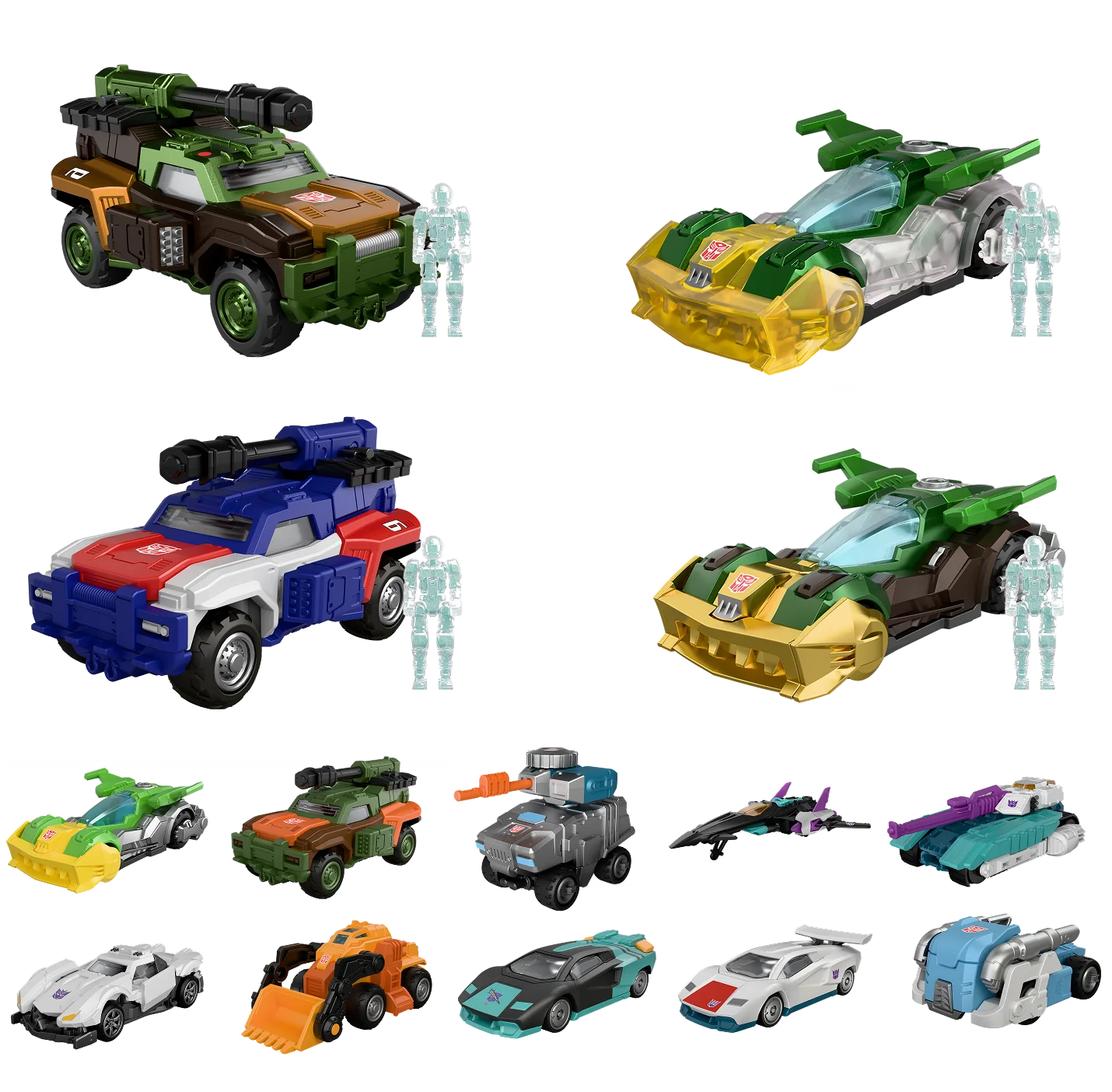 Command the battlefield with the officially licensed Wreck 'N Rule collection. Explore the 12-unit display set featuring a 12+4 lineup of diverse vehicle types. Each set offers a chance to pull rare Titanium, Hologram, or Radiant editions to complete your ultimate Transformers fleet.