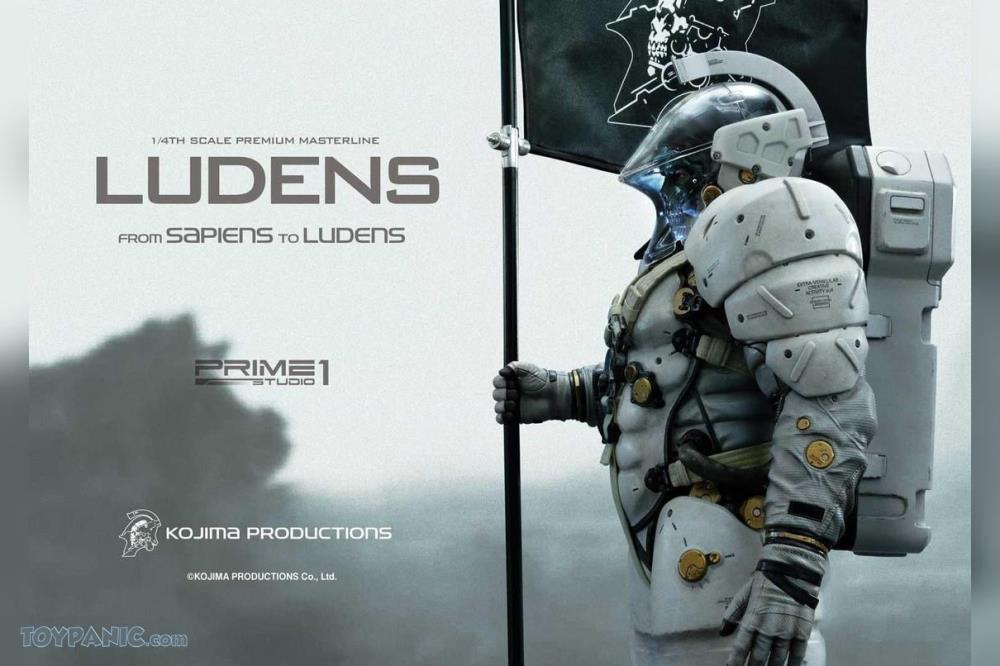 Ludens is the Kojima Productions company icon and mascot. He wears an ""extra-vehicular activity (EVA) creative suit"", and often carries a flag bearing the Kojima Productions logo which is based off Ludens himself. He is prominently featured in a video titled ""Kojima Productions logo movie"", where he treks into the unknown of space and plants the studio flag into uncharted lunar ground. Yoji Shinkawa was the principal designer of Ludens, having formulated the overall design and idiosyncrasies of the mascot. Ludens' design has a high tech feel, giving him a nostalgic ambiance. The surface of his EVA suit has ""Turing pattern""-like elements that slightly rotate, inspired by the Turing machine.