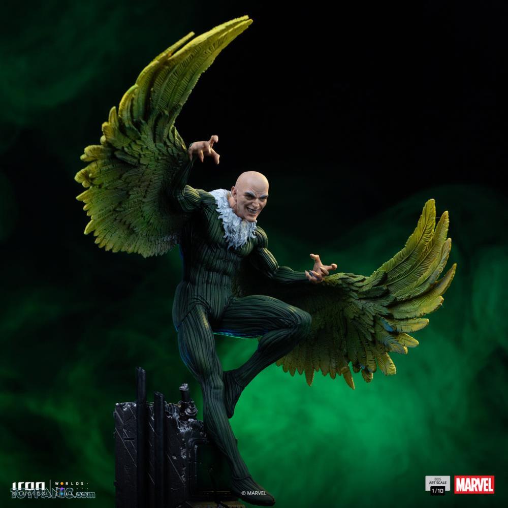 About the product: Produced by Iron Studios, the Vulture statue showcases the villain in mid-flight, capturing the character’s imposing presence and dynamic motion in a composition full of movement. The statue is made with high-quality materials such as Polystone and may contain parts in resin, ABS, PVC, metal, and fabric. The hand-painted finish guarantees a unique and exclusive artistic touch to satisfy any collector. An essential addition to complete the Spider-Man villains diorama.