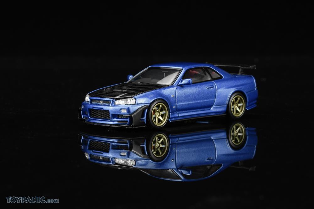 1/64 MotorHelix Nissan Skyline GT-R (R34) Customized with GT Aero Kit Bayside Blue